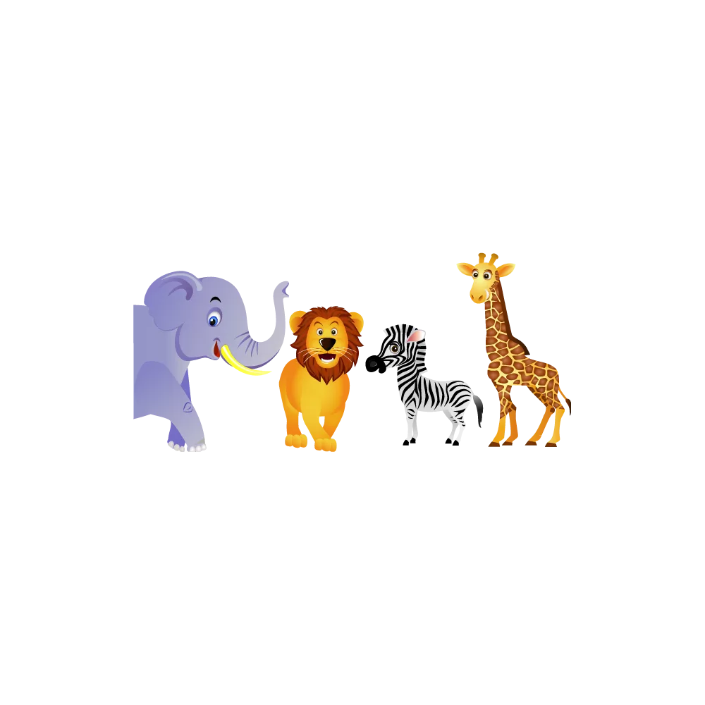 Αυτοκόλλητο τοίχου ελέφαντας, λιοντάρι, ζέβρα και καμηλοπάρδαλη.Ζώα της ζούγκλας