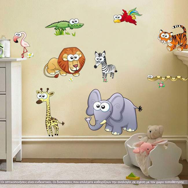 Αυτοκόλλητα τοίχου παιδικά Τα Ζωάκια της Σαβάνας , με πολλά μεγάλα ζωάκια