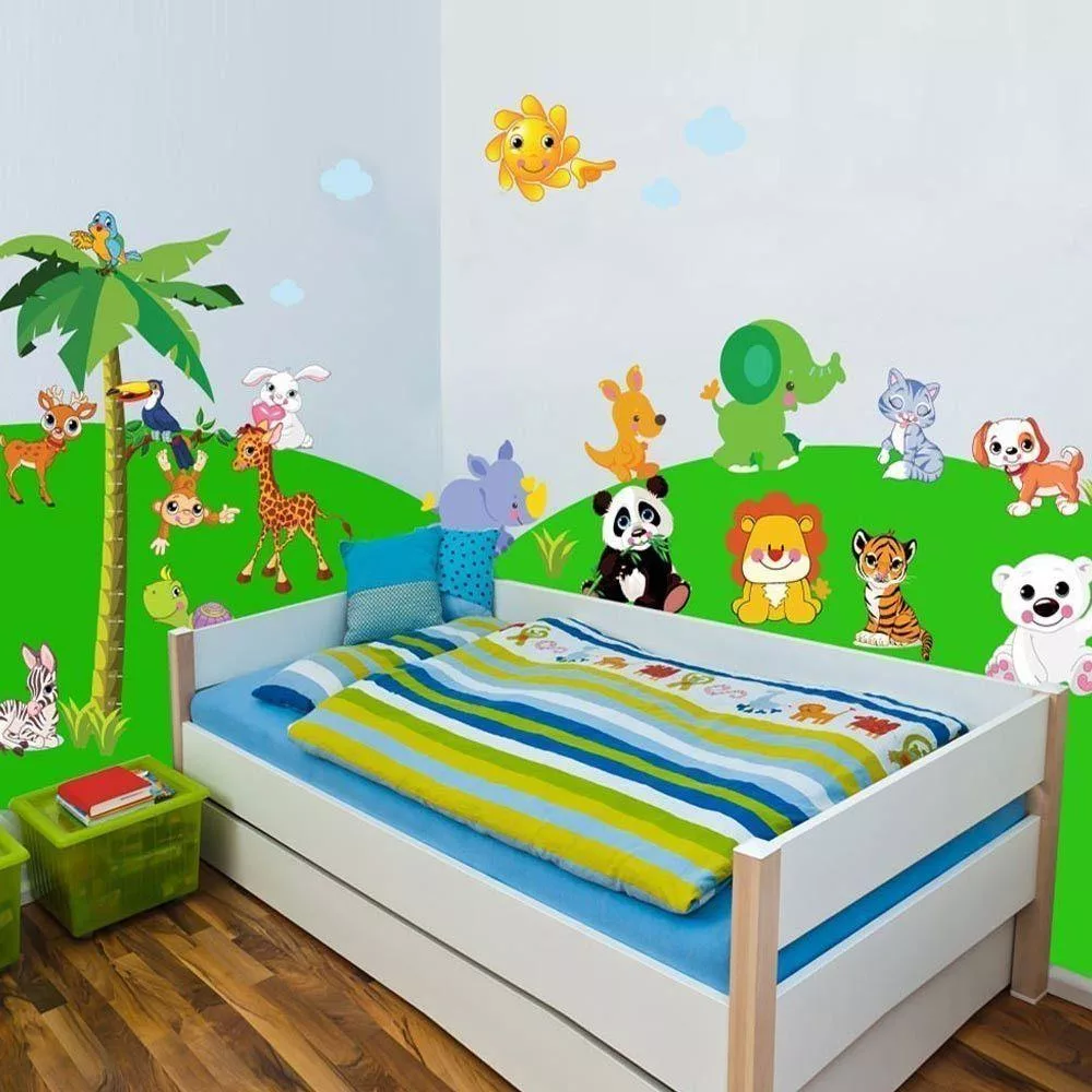 Πολλά ζωάκια. Οικονομικό σχέδιο. Γεμίζει το δωμάτιο και το παιδί έχει ένα πολύχρωμο και χαρούμενο δωμάτιο.