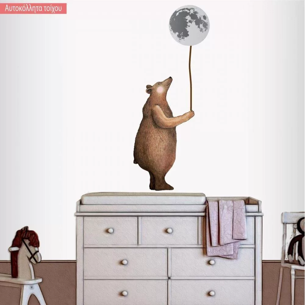 Αυτοκόλλητο τοίχου παιδικό Αρκούδα και φεγγάρι