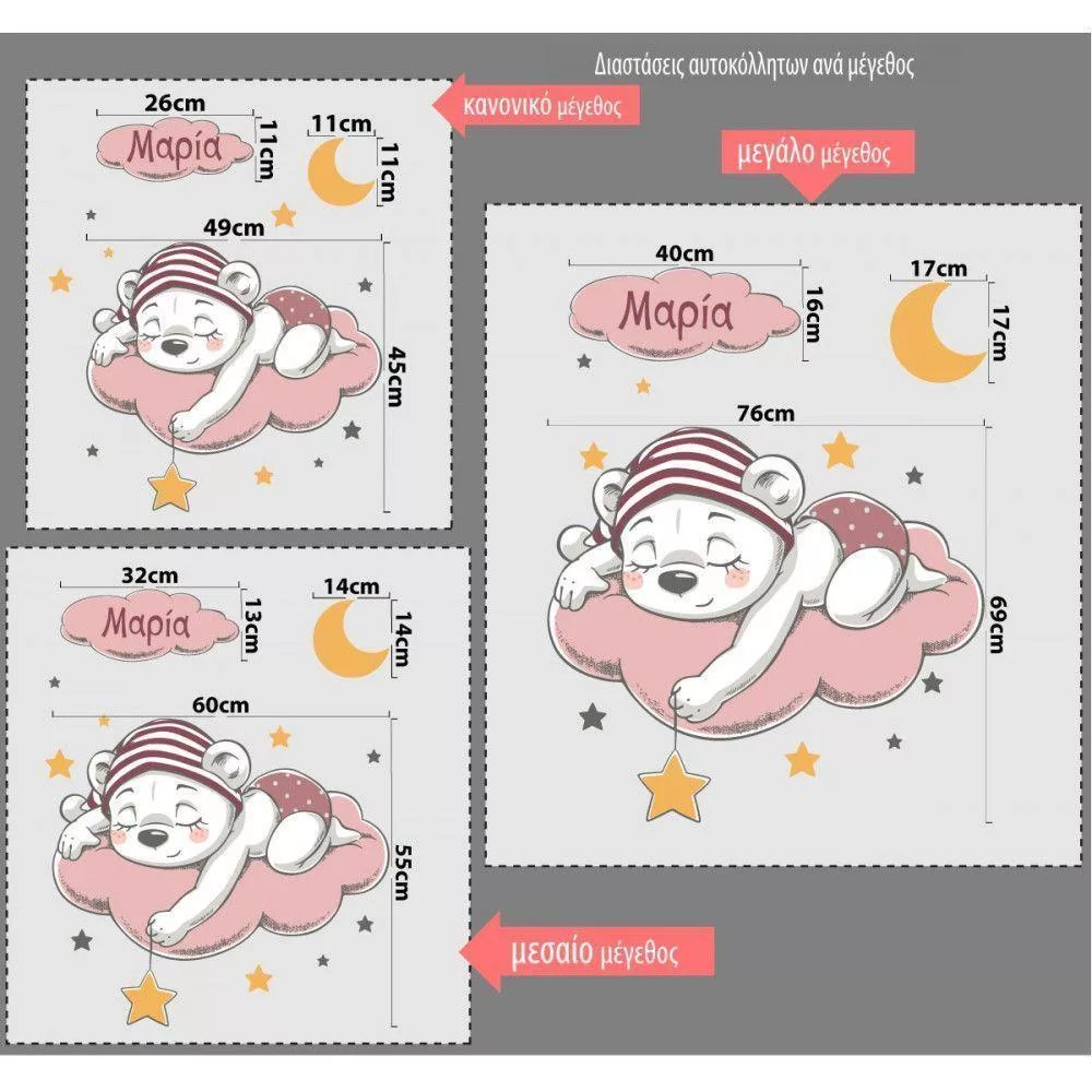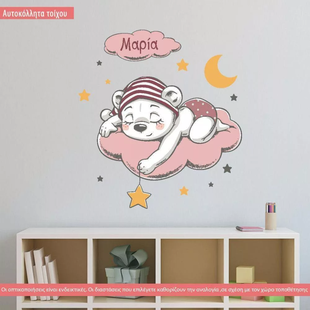 Αυτοκόλλητο τοίχου, αρκουδάκι σε σύννεφο με όνομα girly