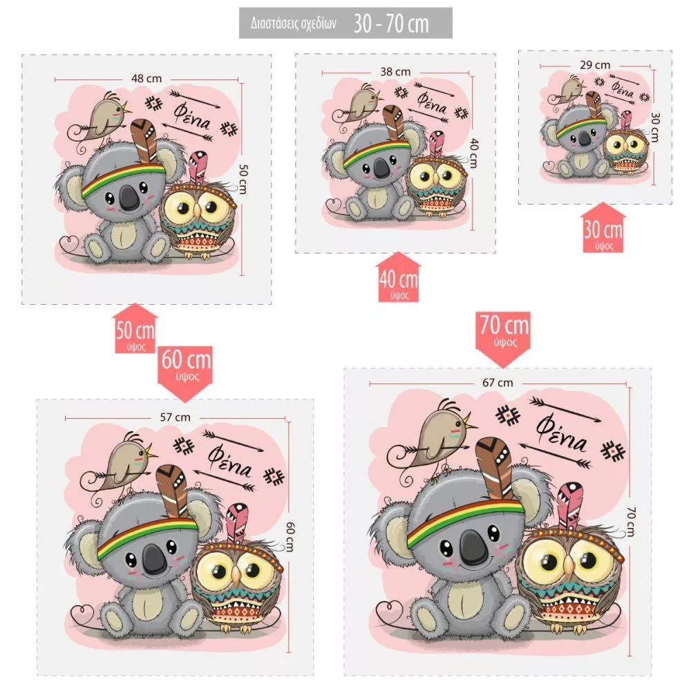 Παιδικά αυτοκόλλητα, Κοάλα και κουκουβάγια για κοριτσάκι