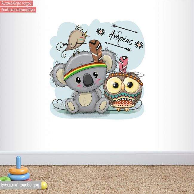 Παιδικό αυτοκόλλητο, Κοάλα και κουκουβάγια για αγοράκι