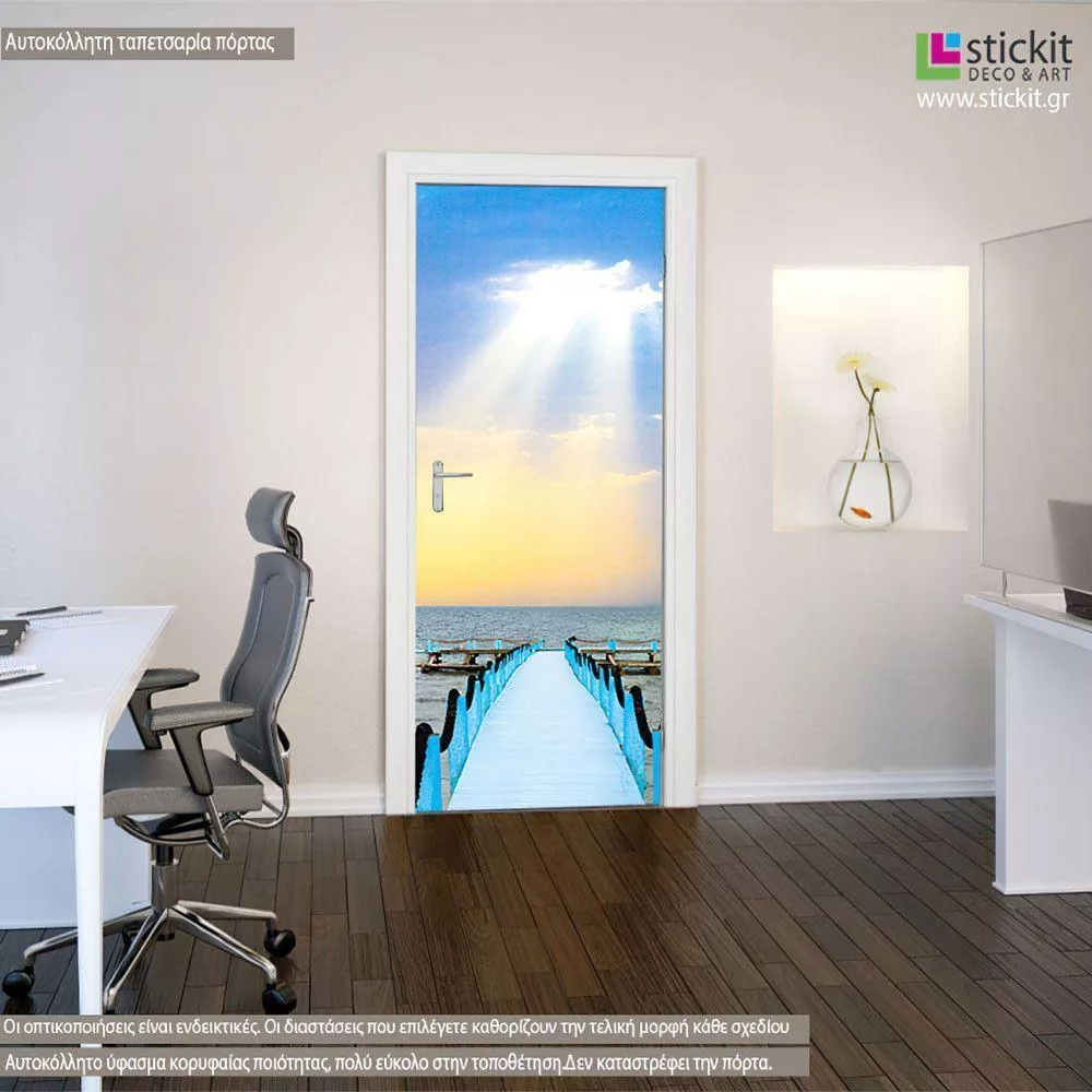Αυτοκόλλητο πόρτας Γαλάζια προβλήτα στην θάλασσα