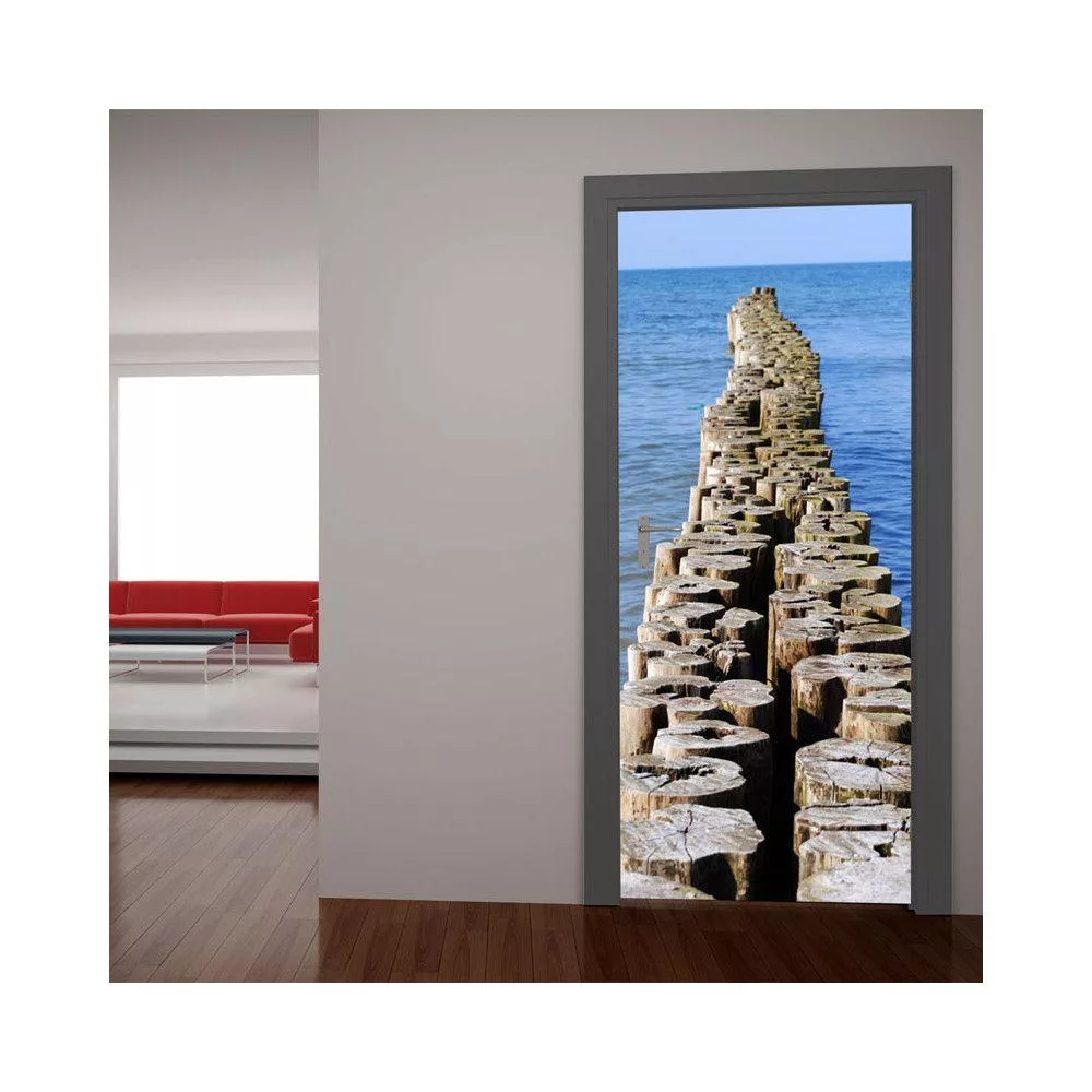Αυτοκόλλητο πόρτας Ξύλινο μονοπάτι στην θάλασσα