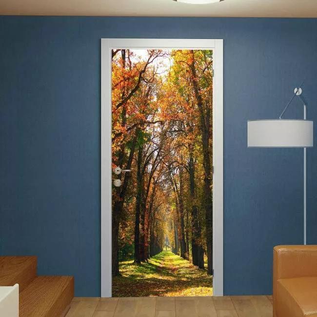 Αυτοκόλλητο πόρτας Autumn yellow park