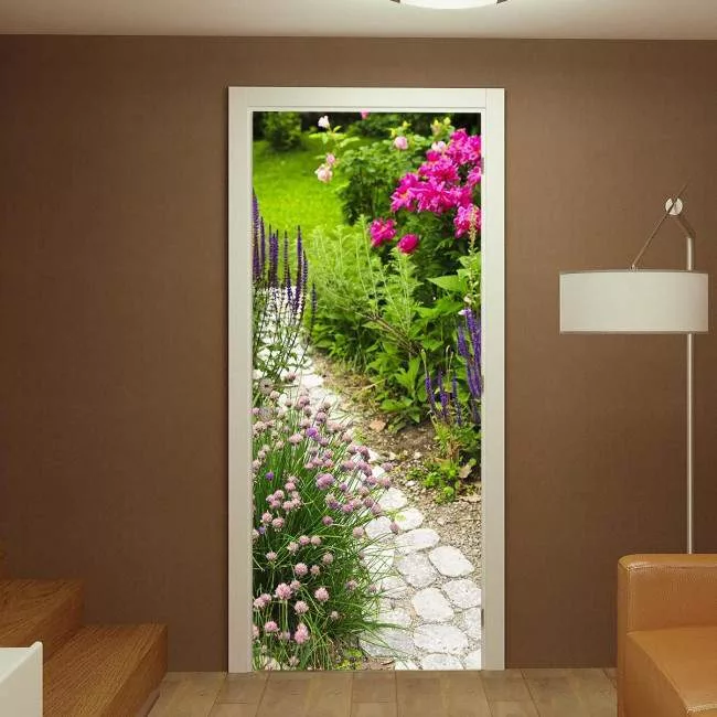 Αυτοκόλλητο πόρτας Lush blooming summer garden