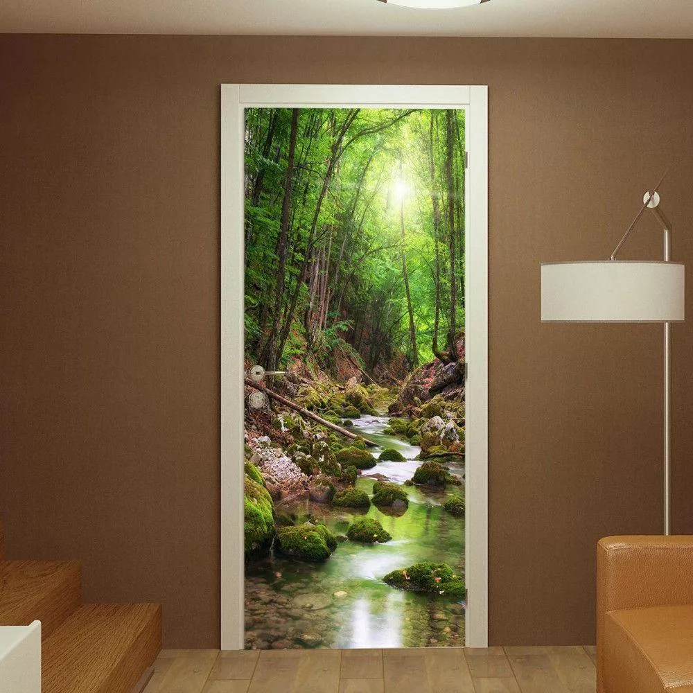 Αυτοκόλλητο πόρτας River deep in mountain forest