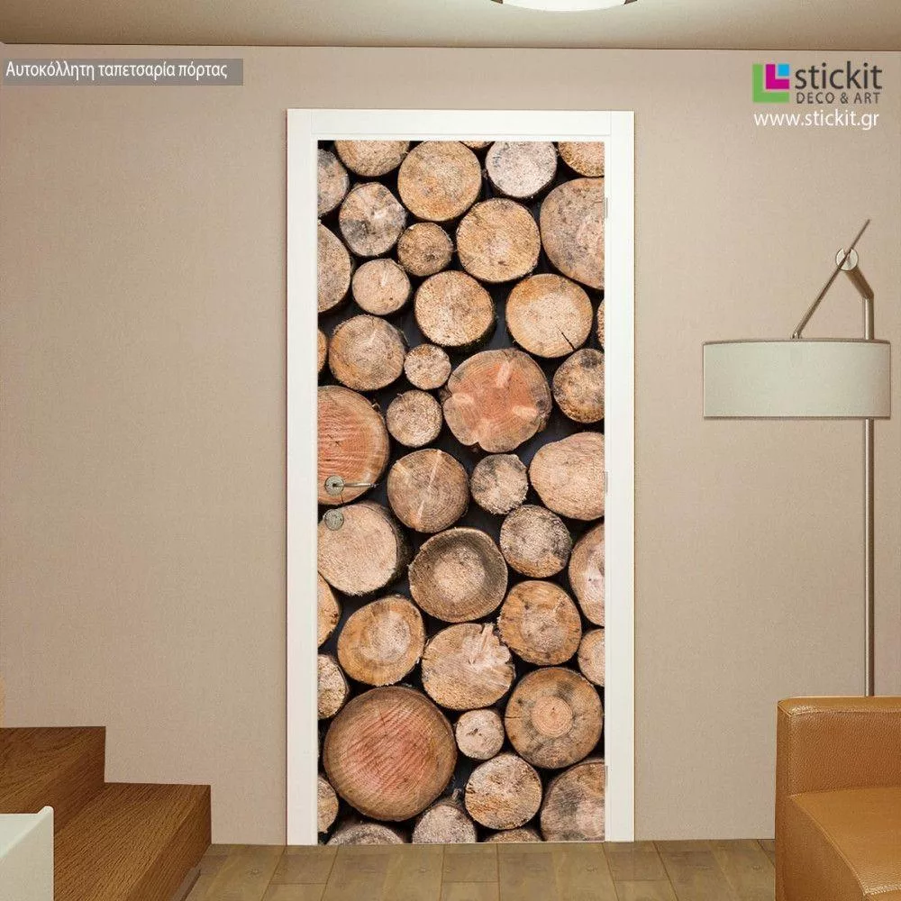 Αυτοκόλλητο πόρτας Wood trunks σωρός ξύλων