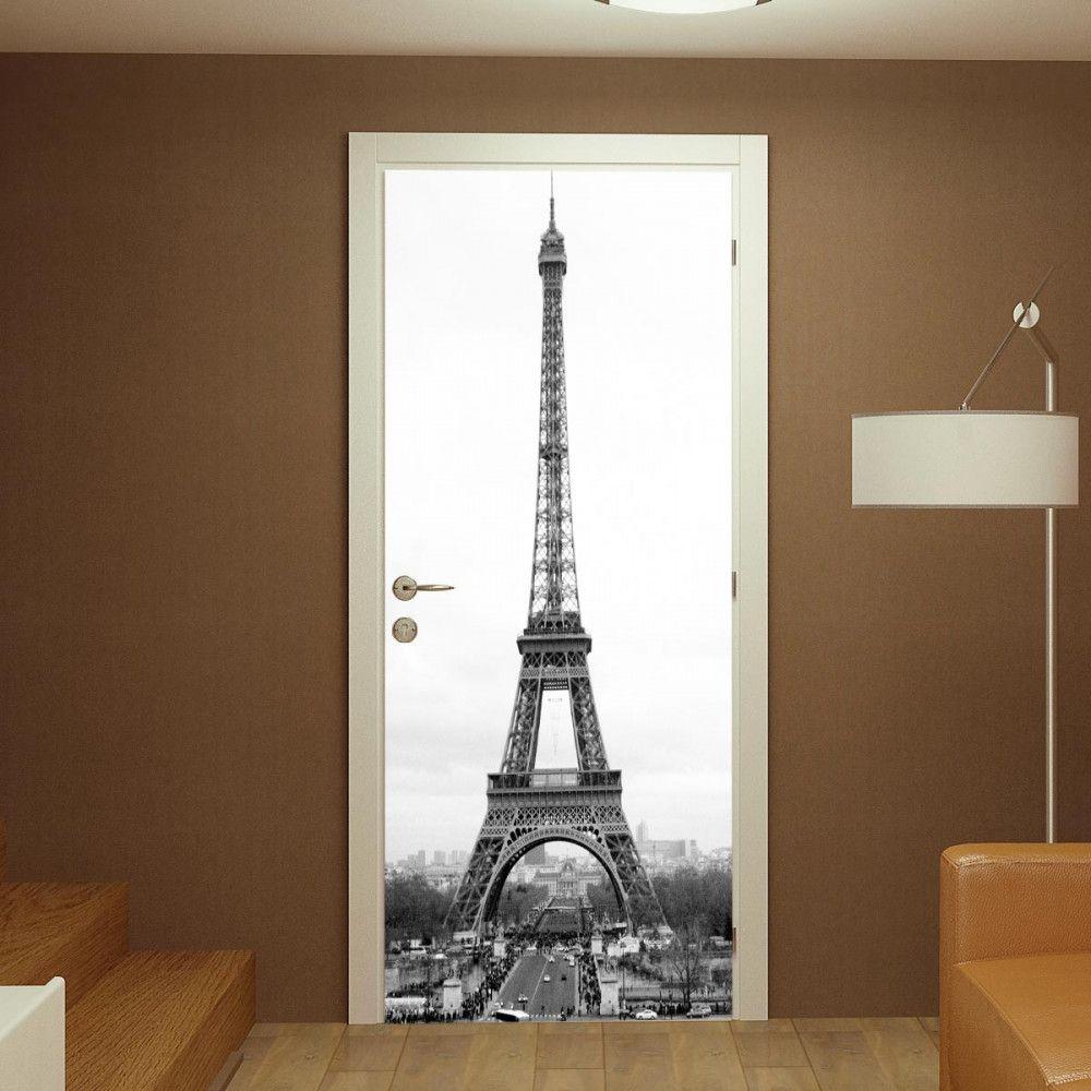 Αυτοκόλλητο πόρτας Eiffel tower grayscale