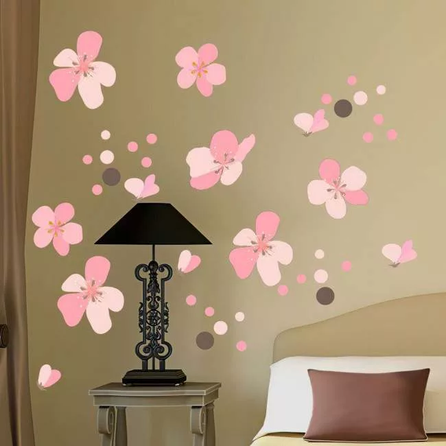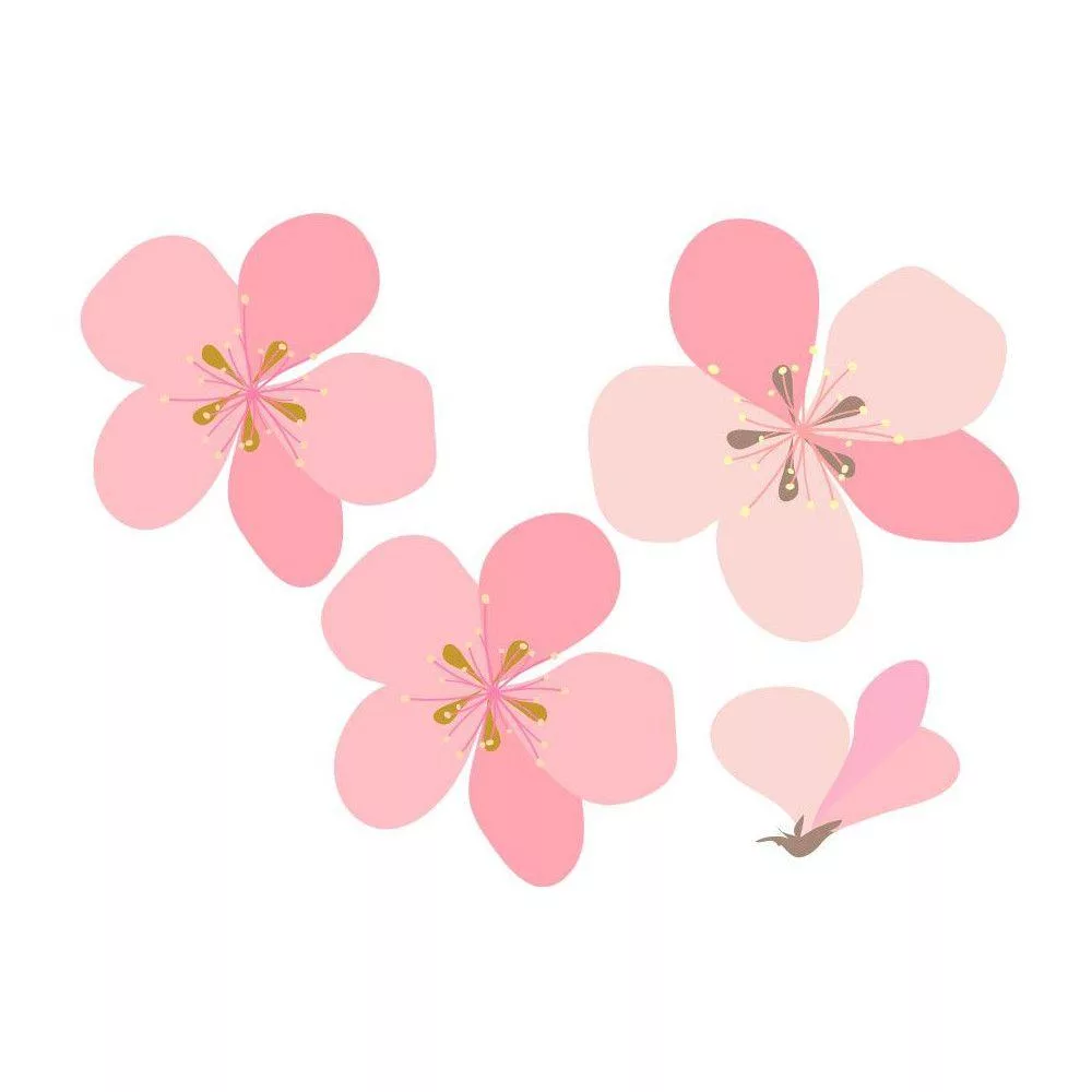 Αυτοκόλλητο τοίχου ροζ λουλούδια και πέταλα, Άνθη κερασιάς