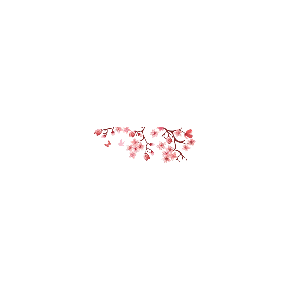 Αυτοκόλλητο τοίχου ροζ λουλούδια και πεταλούδες, ανθισμένα κλαδιά. Blossomed branch