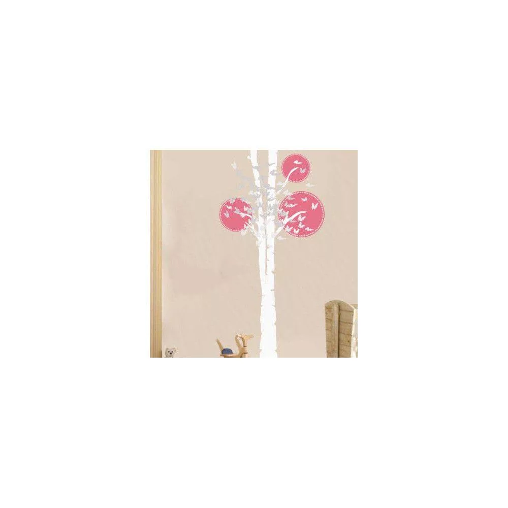 Αυτοκόλλητο τοίχου δέντρο και πεταλούδες, Butterflies tree, λευκός κορμός