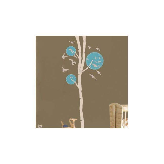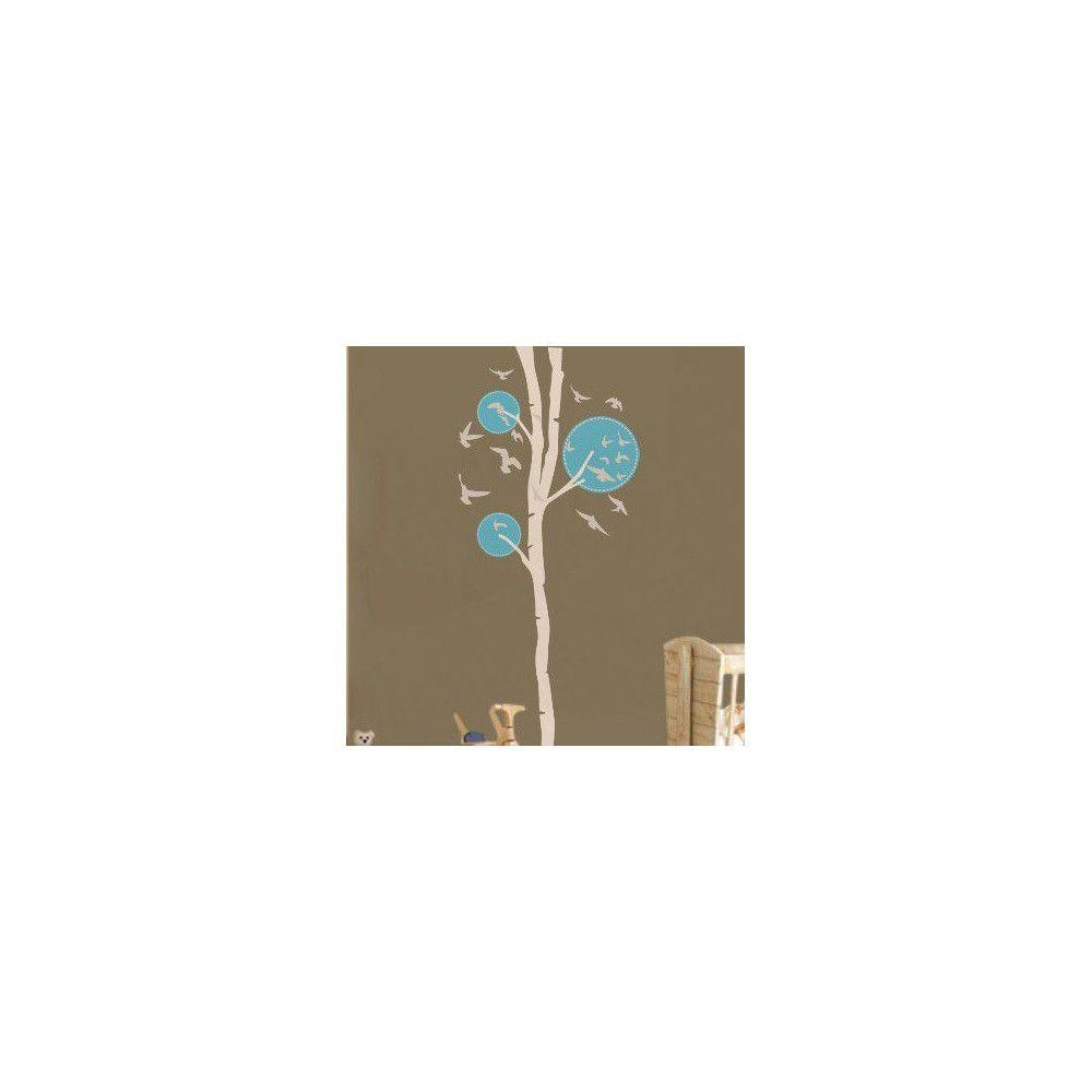 Αυτοκόλλητο τοίχου Design tree, λευκό - γαλάζιο με πουλιά