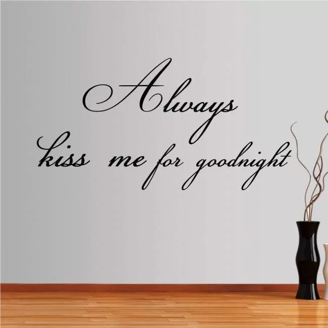 Αυτοκόλλητο τοίχου φράσεις. Always kiss me for goodnight, καλλιγραφική γραμματοσειρά