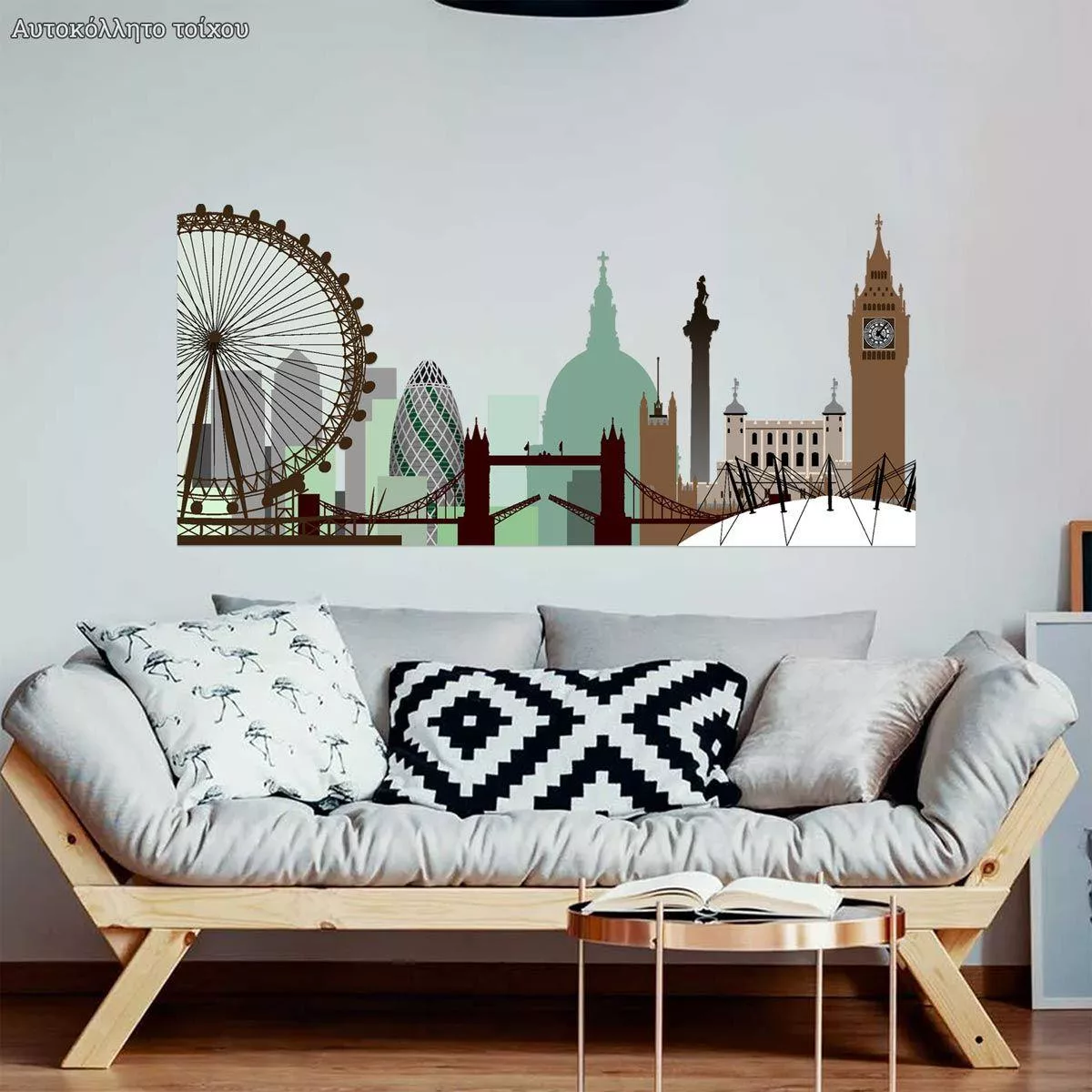 Αυτοκόλλητο τοίχου Λονδίνο, περίγραμμα γήινα χρώματα