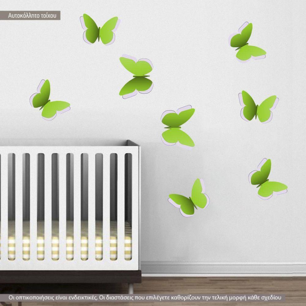 Αυτοκόλλητο τοίχου Σετ Δίχρωμες Πεταλούδες green