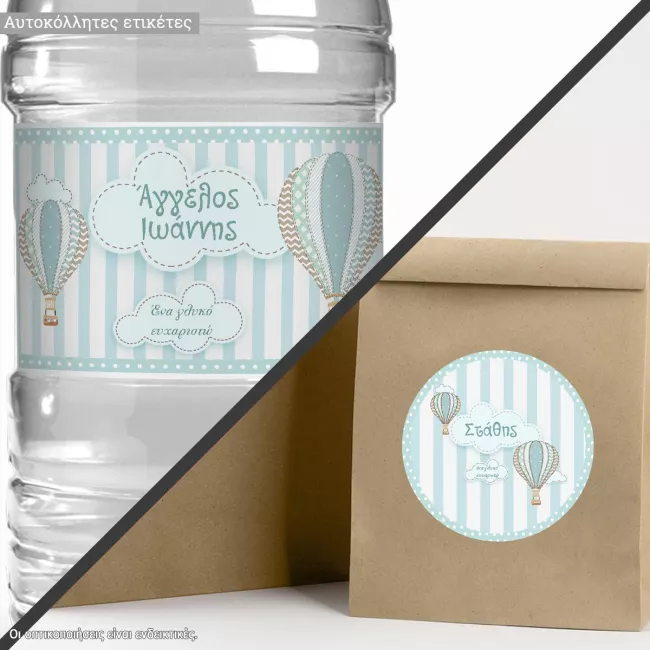 Αυτοκόλλητη ετικέτα Αερόστατα vintage, με όνομα και ημερομηνία