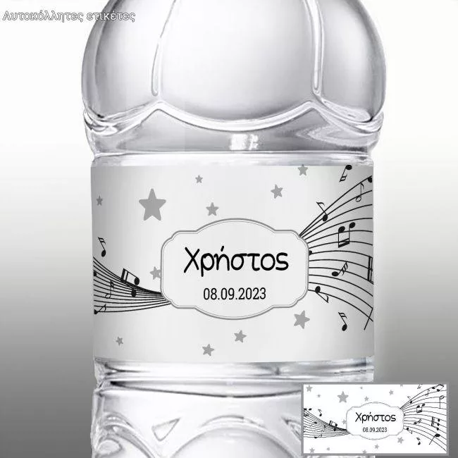 Αυτοκόλλητη ετικέτα Αστέρια και νότες, με όνομα και ημερομηνία