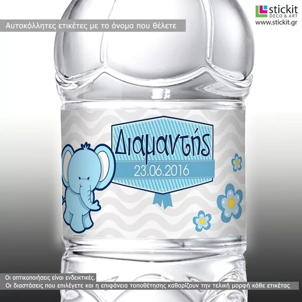 Αυτοκόλλητη ετικέτα Ελεφαντάκι, με όνομα και ημερομηνία
