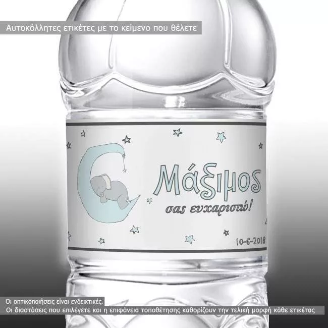 Αυτοκόλλητη ετικέτα Ελεφαντάκι στο φεγγάρι, με όνομα και ημερομηνία