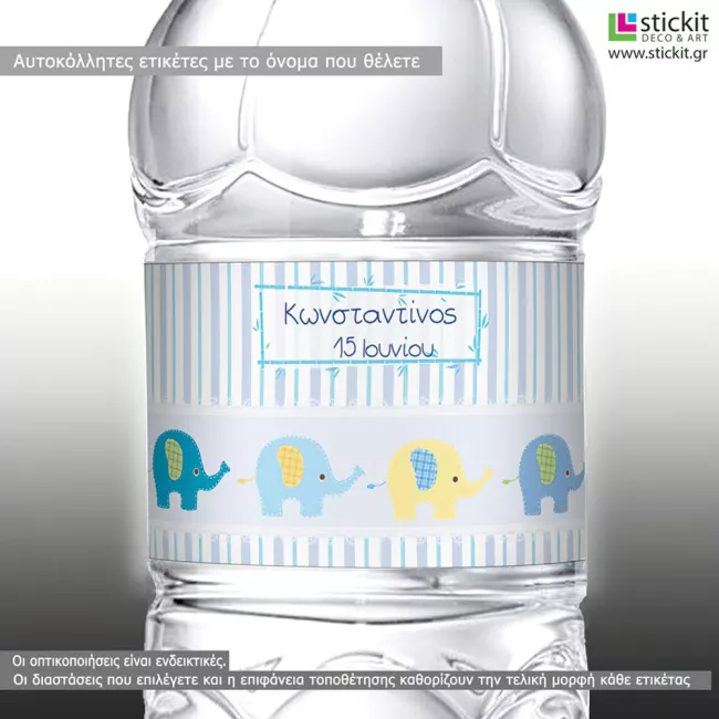Αυτοκόλλητη ετικέτα Ελεφαντάκια, με όνομα και ημερομηνία