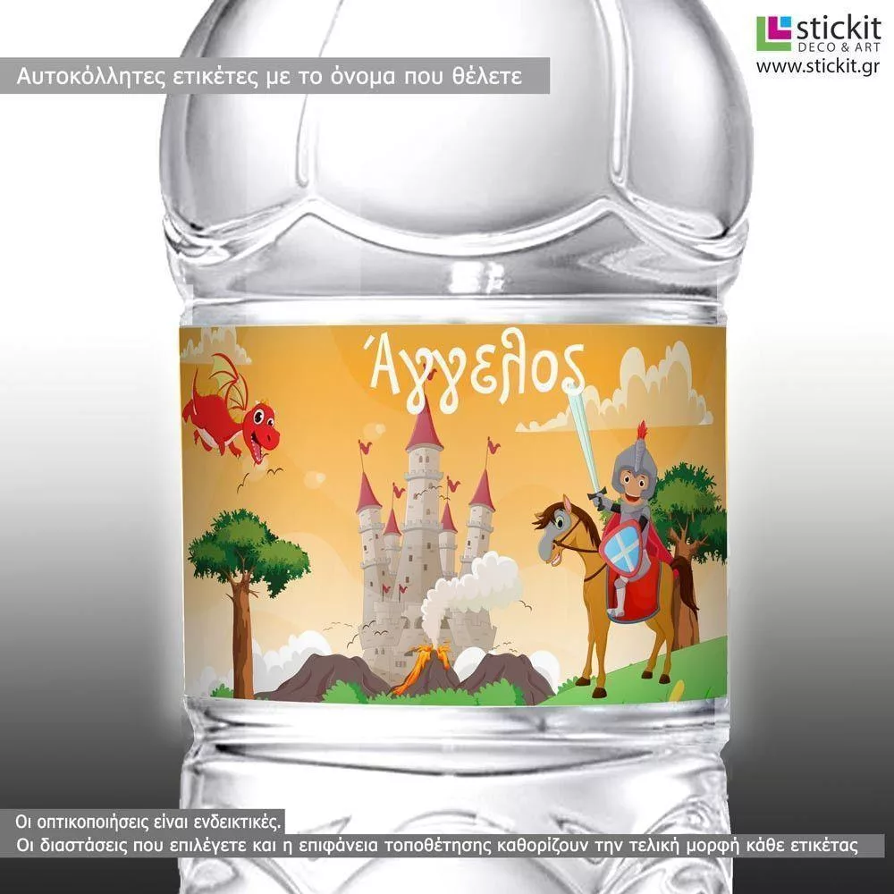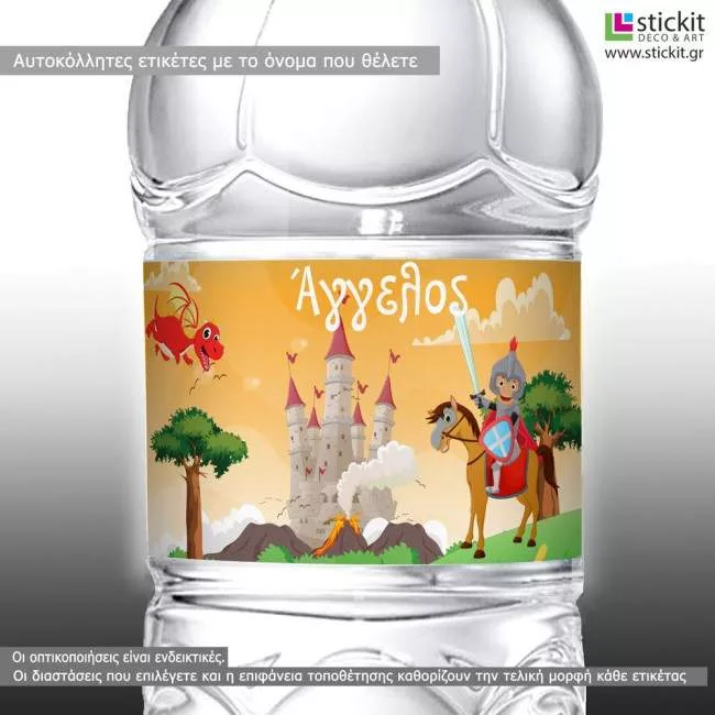 Αυτοκόλλητη ετικέτα Ιππότης και δράκος, με όνομα και ημερομηνία