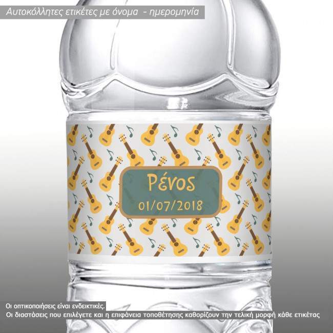 Αυτοκόλλητη ετικέτα Κιθάρα, με όνομα και ημερομηνία