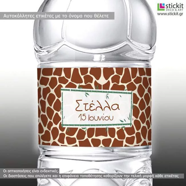 Αυτοκόλλητη ετικέτα Μοτίβα με ζώα, καμηλοπάρδαλη, με όνομα και ημερομηνία