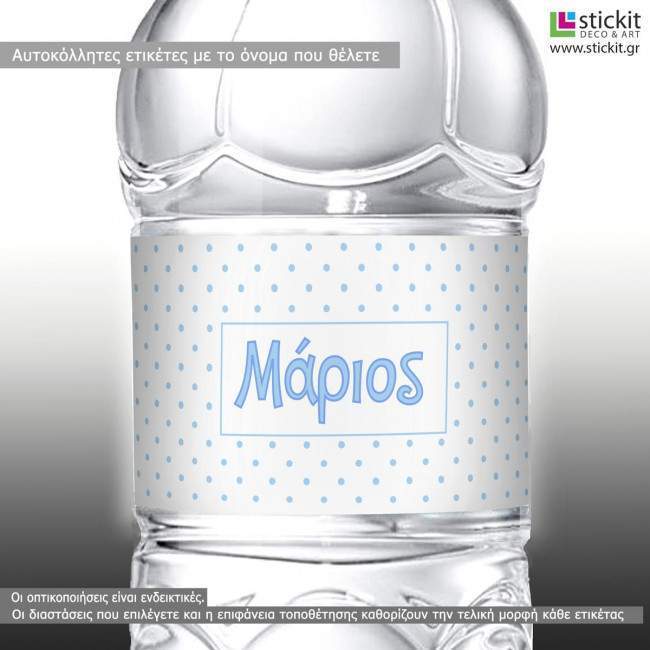 Αυτοκόλλητη ετικέτα μοτίβο άσπρο - γαλάζιο πουά με όνομα και ημερομηνία