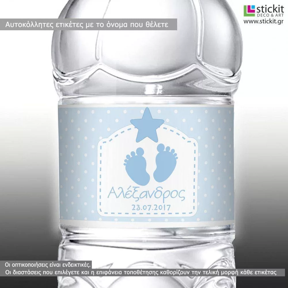 Αυτοκόλλητη ετικέτα Πατουσάκια με αστέρι, με όνομα και ημερομηνία