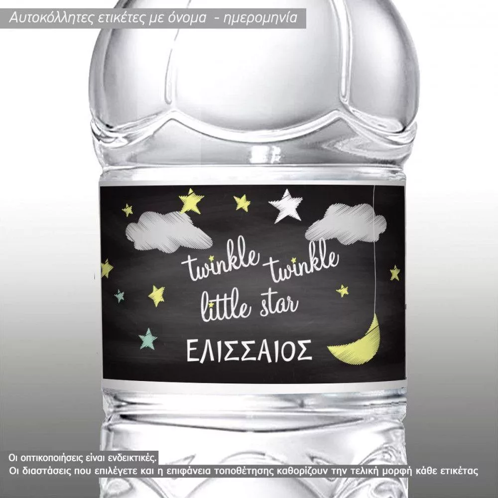 Αυτοκόλλητη ετικέτα Twinkle twinkle little star, chalk effect, με όνομα και ημερομηνία