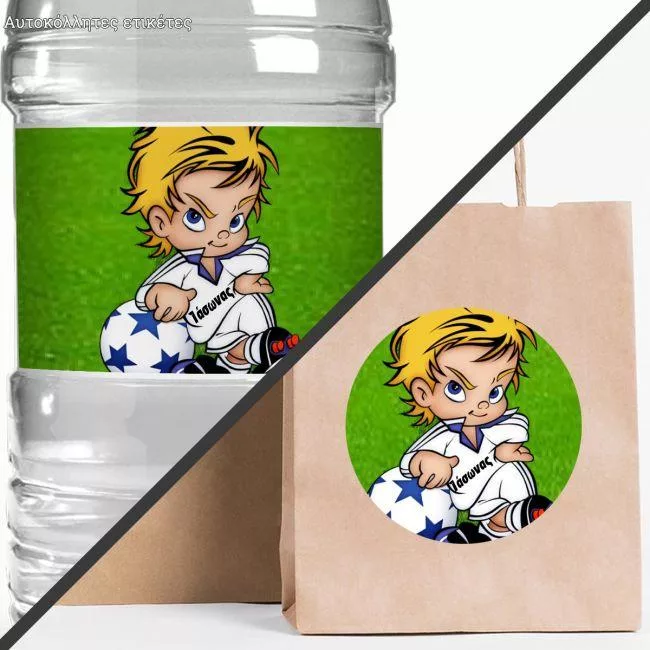 Αυτοκόλλητη ετικέτα Ποδοσφαιριστής cartoon style, προσωποποιημένη