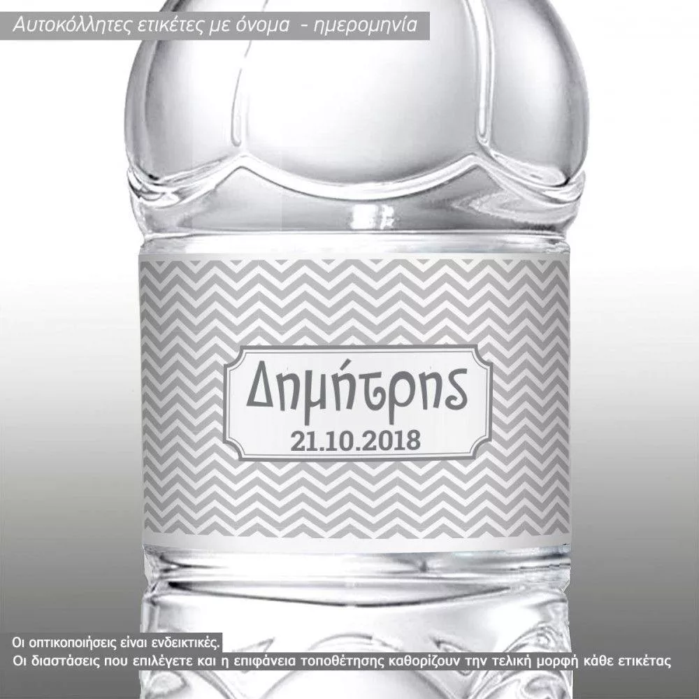Αυτοκόλλητη ετικέτα chevron λευκό - γκρι με όνομα και ημερομηνία