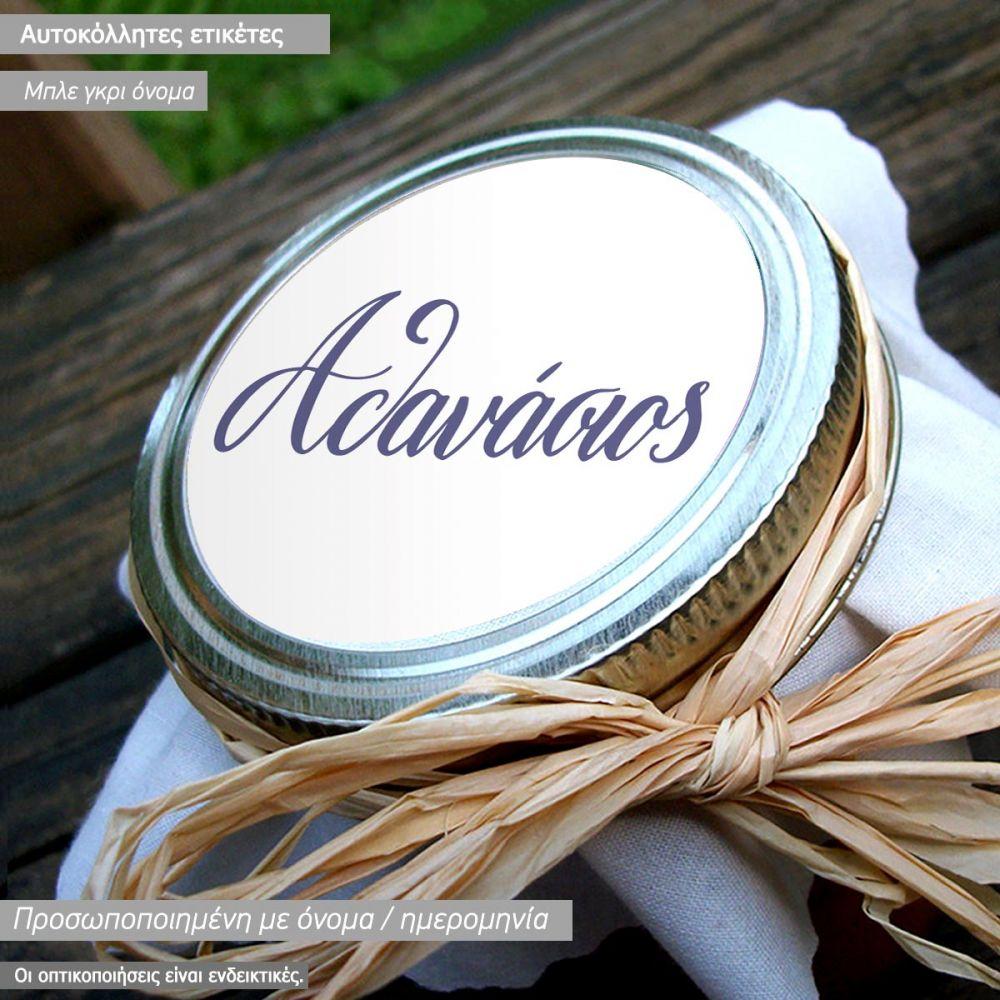 Αυτοκόλλητες ετικέτες κυκλικές Γκρι εκτυπωμένο όνομα