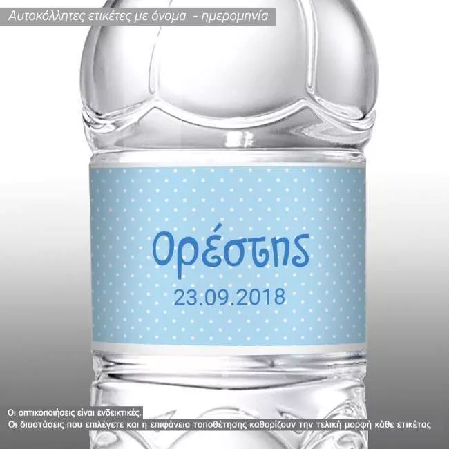 Αυτοκόλλητη ετικέτα μοτίβο γαλάζιο - άσπρο πουά με όνομα και ημερομηνία