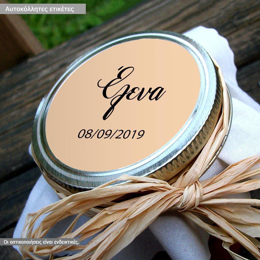 Αυτοκόλλητη ετικέτα μονόχρωμη, Μπεζ αποχρώσεις, με όνομα και ημερομηνία