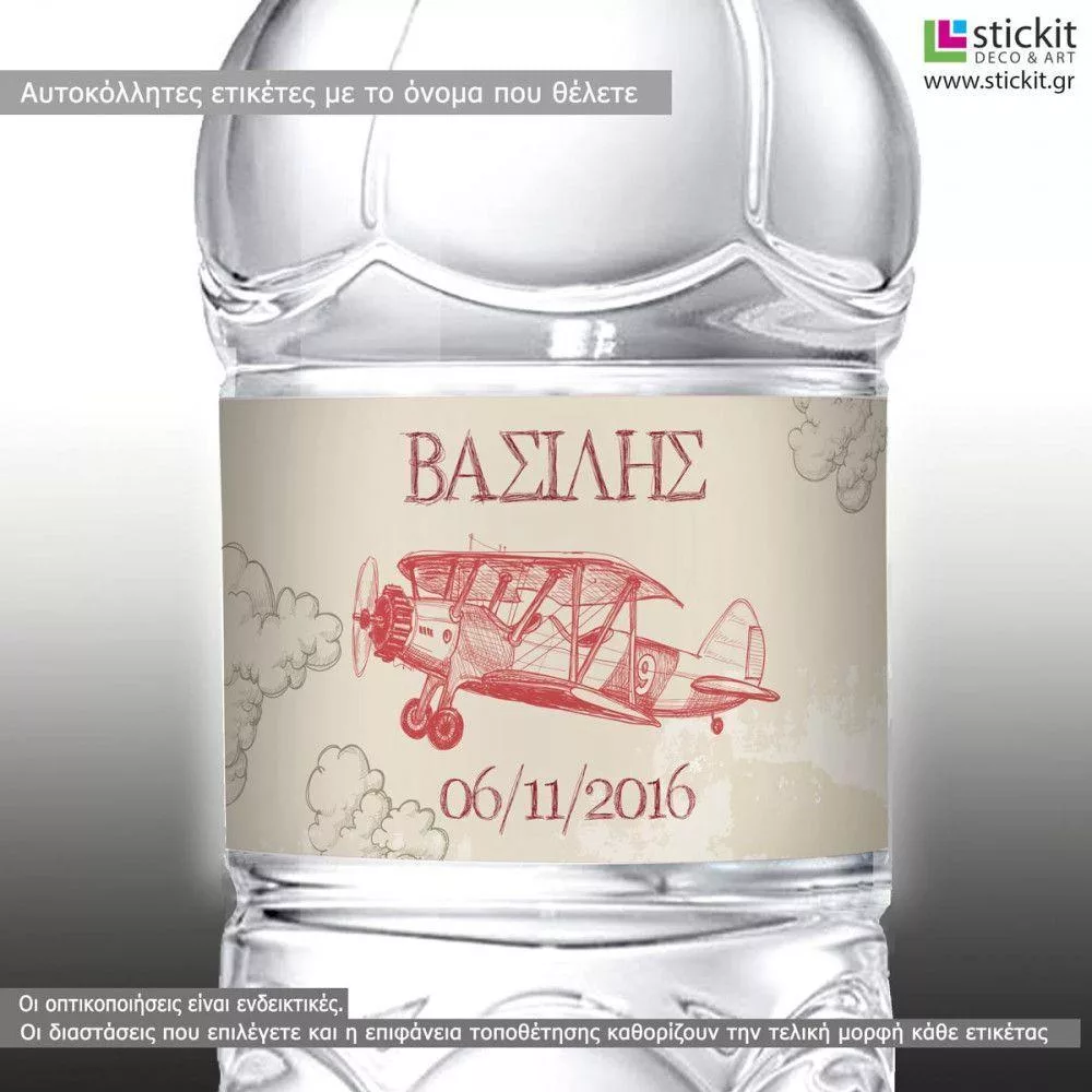 Αυτοκόλλητη ετικέτα Αεροπλάνο hand drawn, με όνομα και ημερομηνία