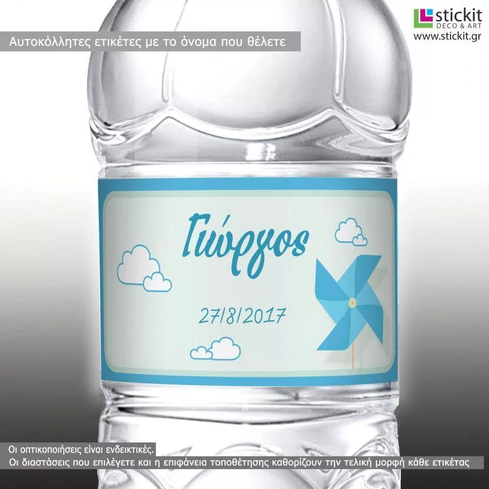 Αυτοκόλλητη ετικέτα Ανεμόμυλος χάρτινο παιχνίδι, με όνομα και ημερομηνία