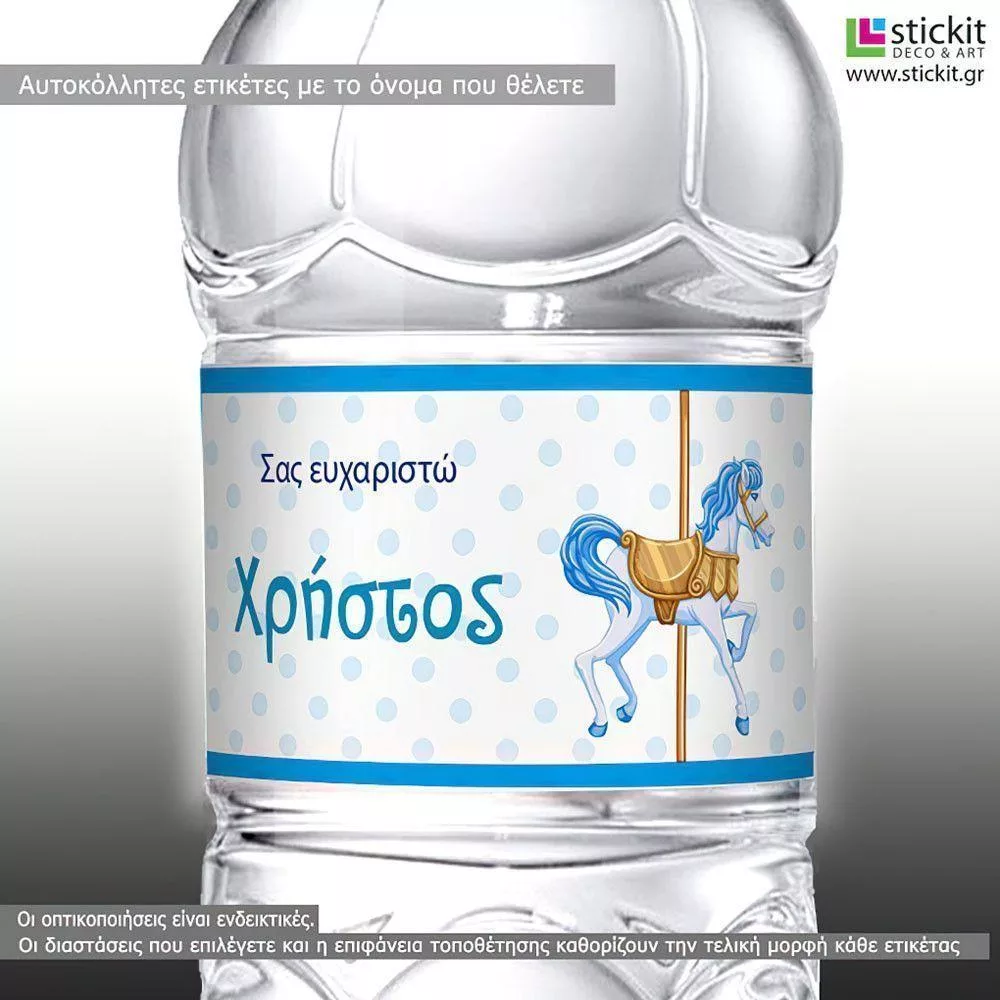 Αυτοκόλλητη ετικέτα Carousel αλογάκι, με όνομα και ημερομηνία