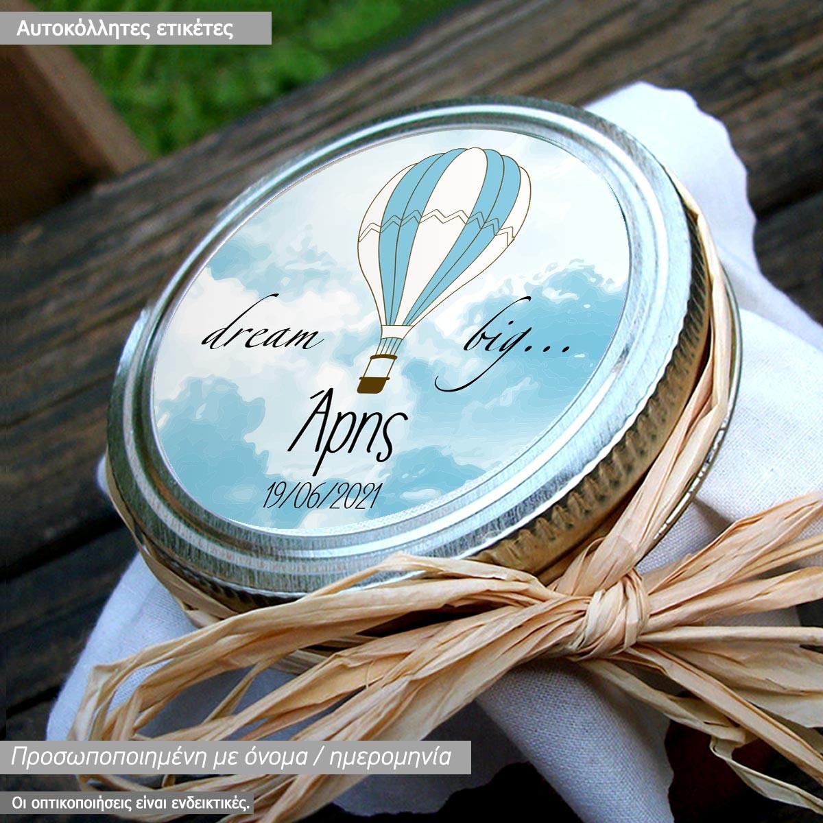 Αυτοκόλλητη ετικέτα Dream big , με όνομα και ημερομηνία