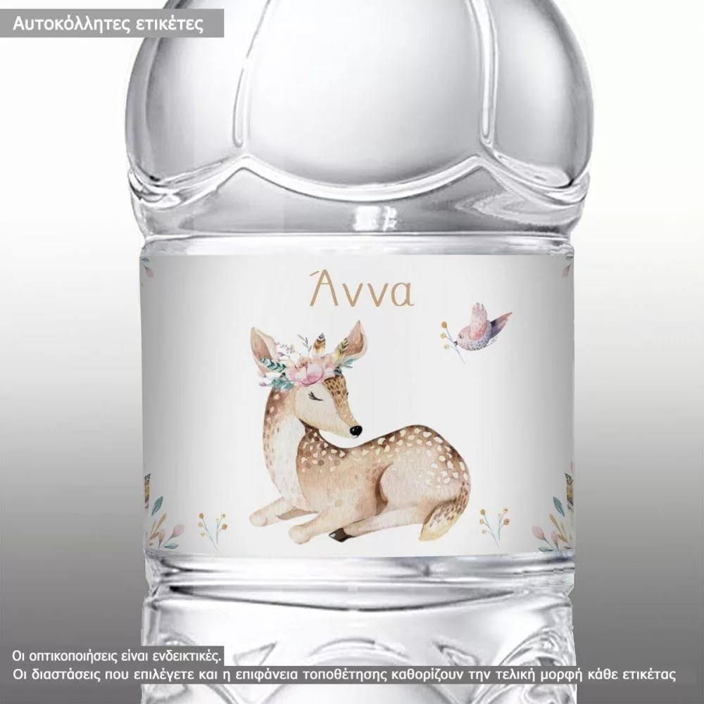 Αυτοκόλλητη ετικέτα Ελαφάκι boho καθιστό με όνομα