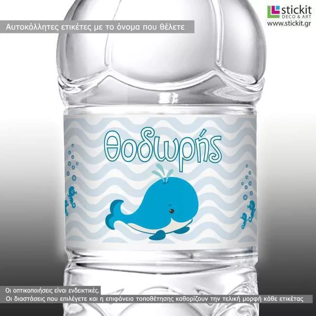 Αυτοκόλλητη ετικέτα Φαλαινάκι, με όνομα και ημερομηνία