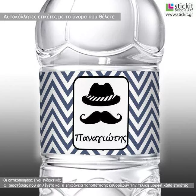 Αυτοκόλλητη ετικέτα Καπέλο και μουστάκι, με όνομα και ημερομηνία