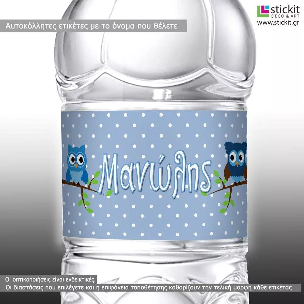 Αυτοκόλλητη ετικέτα Κουκουβάγιες, με όνομα και ημερομηνία