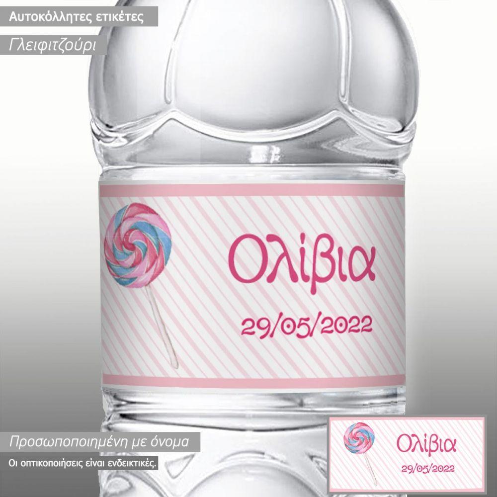 Αυτοκόλλητη ετικέτα lollipop, με όνομα και ημερομηνία