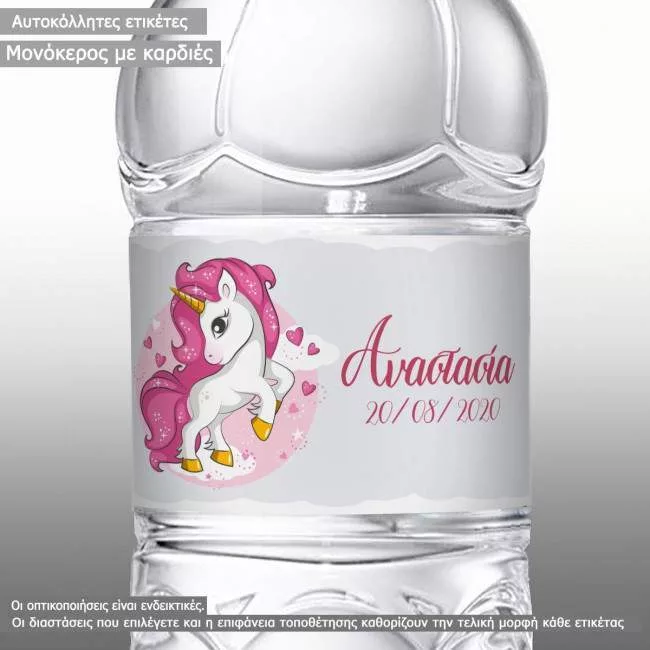 Αυτοκόλλητη ετικέτα Μονόκερος με καρδιές και όνομα