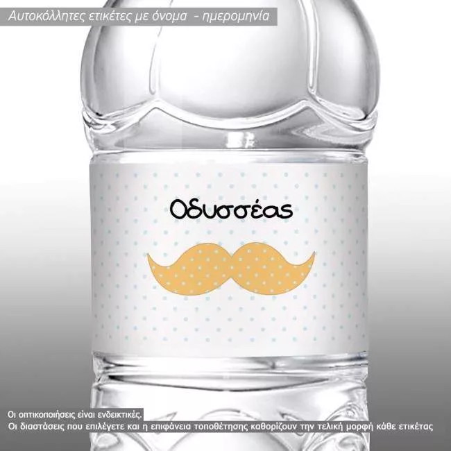 Αυτοκόλλητη ετικέτα Μουστάκι simple, με όνομα και ημερομηνία