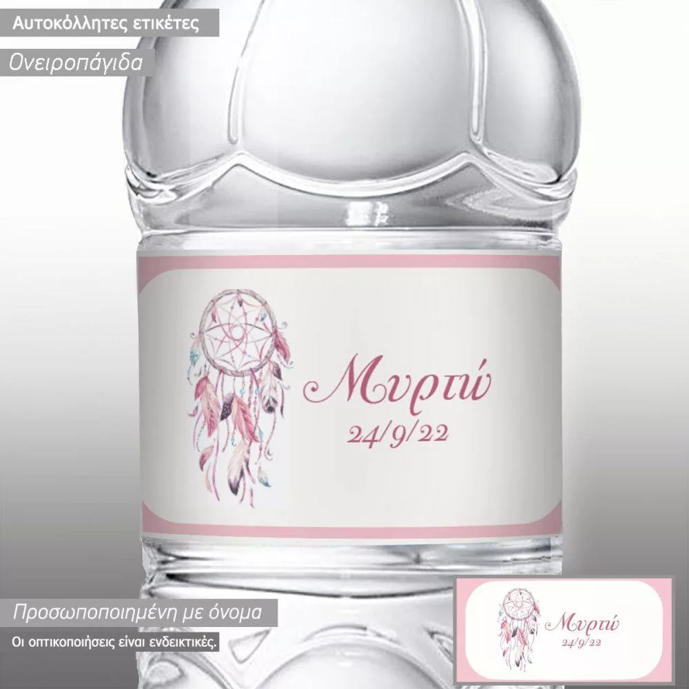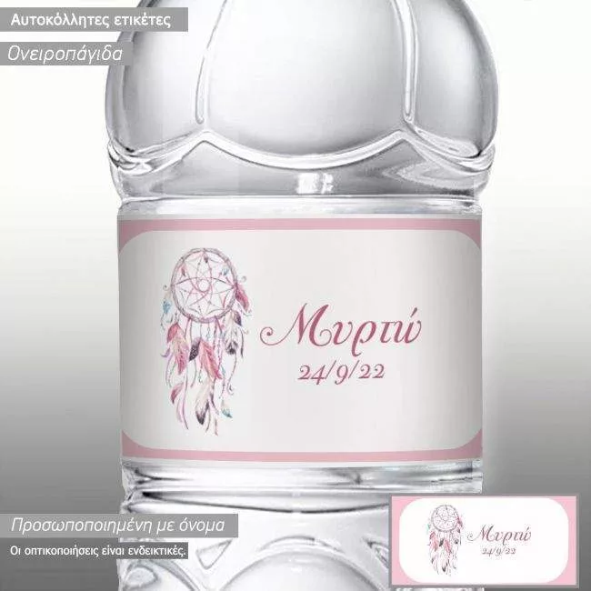 Αυτοκόλλητη ετικέτα Ονειροπαγίδα hand drawn pink με όνομα και ημερομηνία