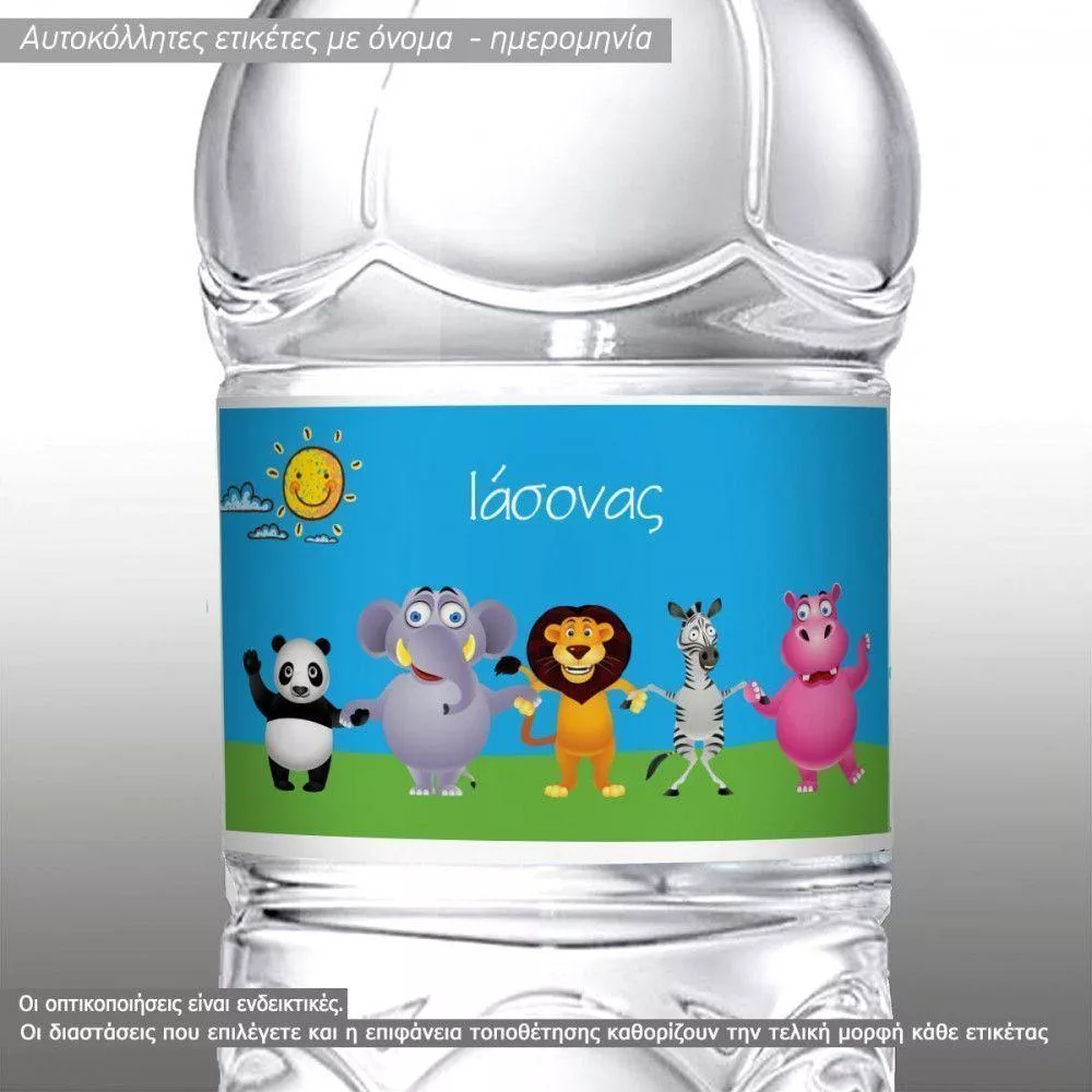 Αυτοκόλλητη ετικέτα Παρέα ζωάκια της ζούγκλας, με όνομα και ημερομηνία